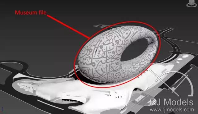 ▲未來博物館建筑模型的電腦3D渲染